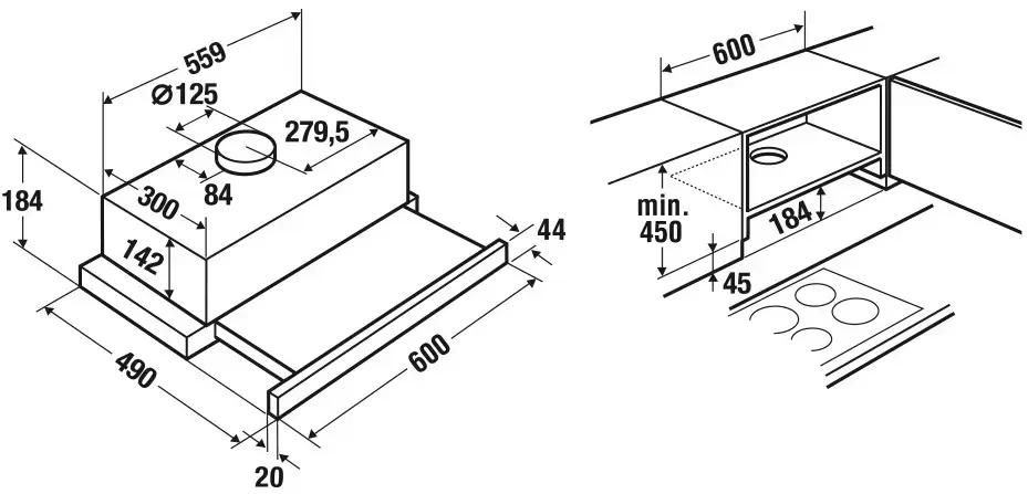 | Габариты ниши для встраивания (ВхШхГ), см | 45х60х30 |