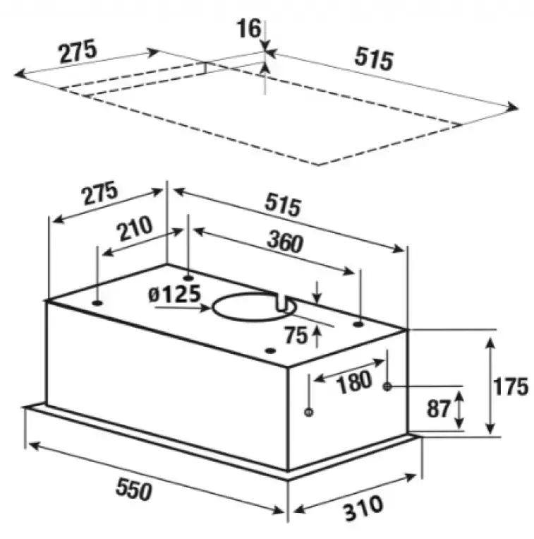 Тип вытяжки: встраиваемая. Тип управления: механическое.