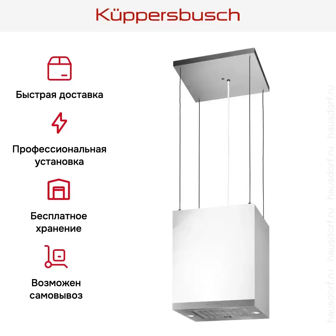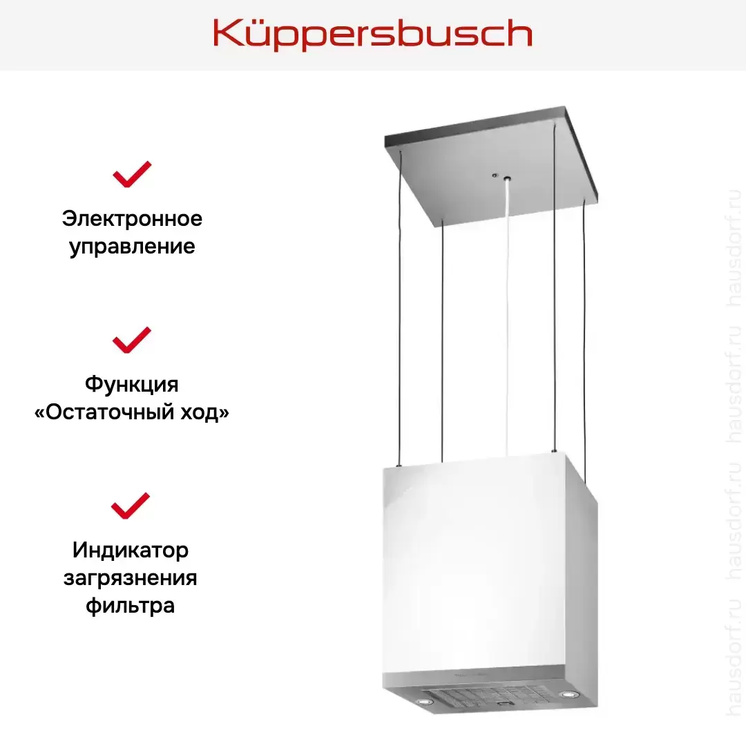 Островная вытяжка Kuppersbusch DI 3800.0 W белое стекло — флагманская модель в линейке Küppersbusch (немецкого производства), кухонная вытяжка высшего класса.