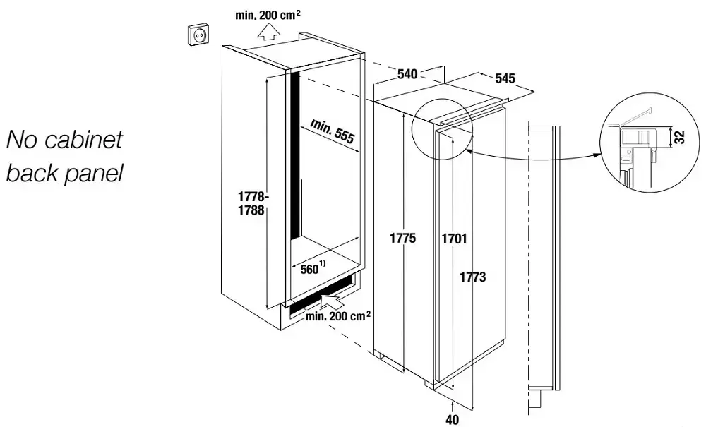 | Габариты ниши для встраивания (ВхШхГ) (см) | 178.8х56х55.5 |