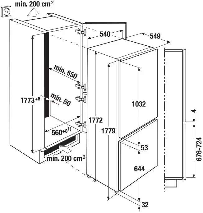 Тип: встраиваемый. Вид: холодильник с морозильником.