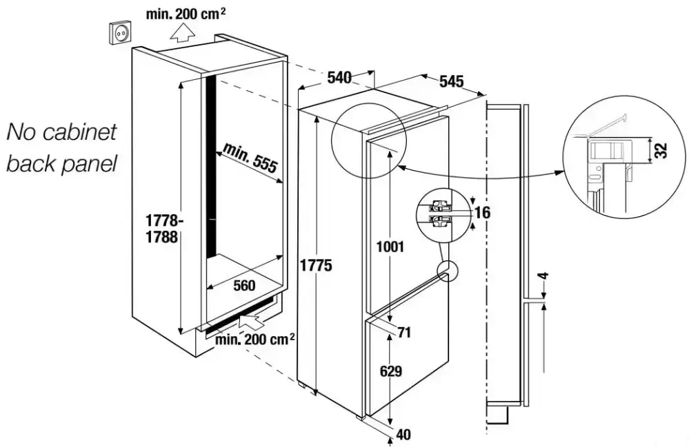 Тип: встраиваемый. Вид: холодильник с морозильником.