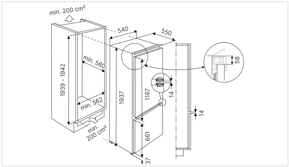 Тип: встраиваемый. Вид: холодильник с морозильником.