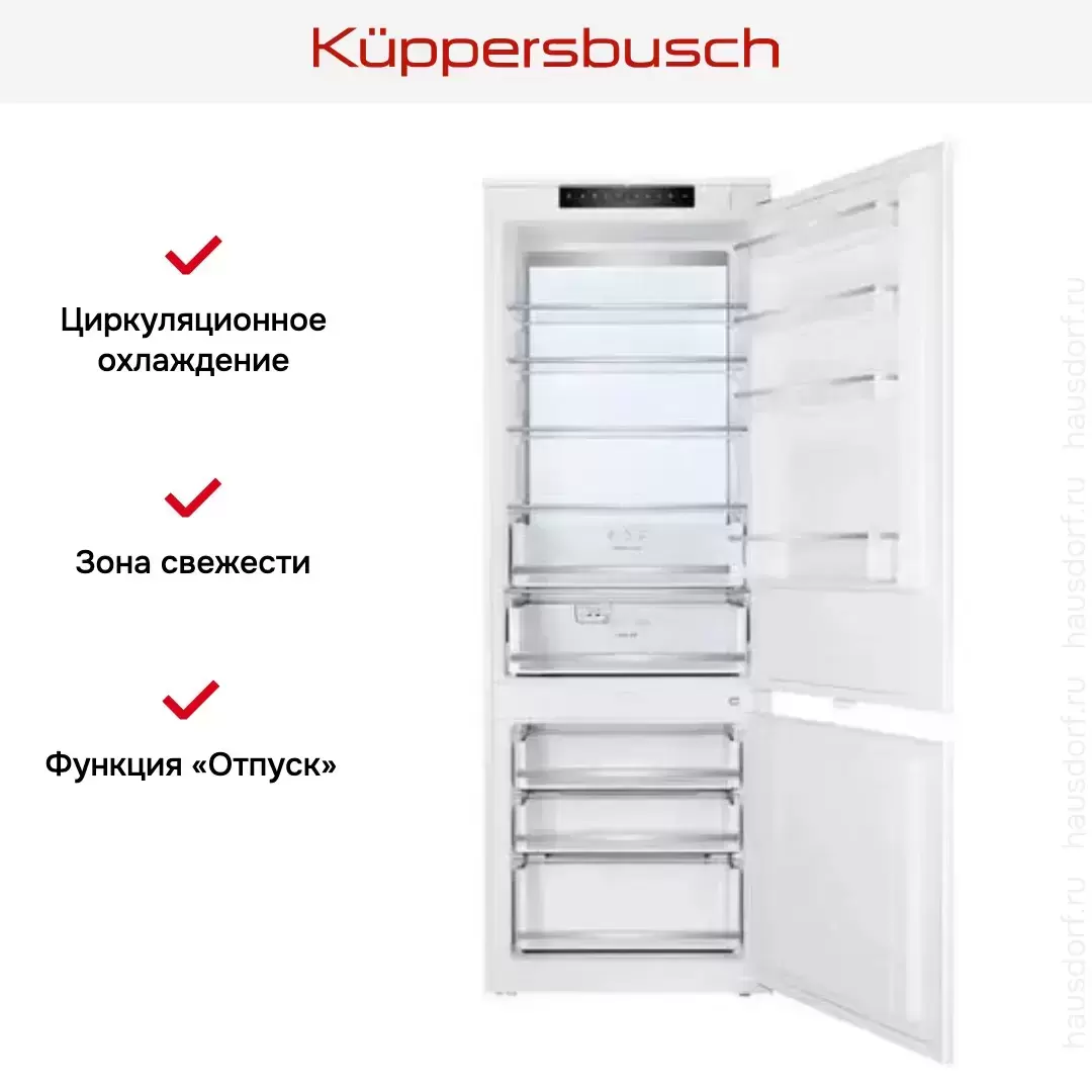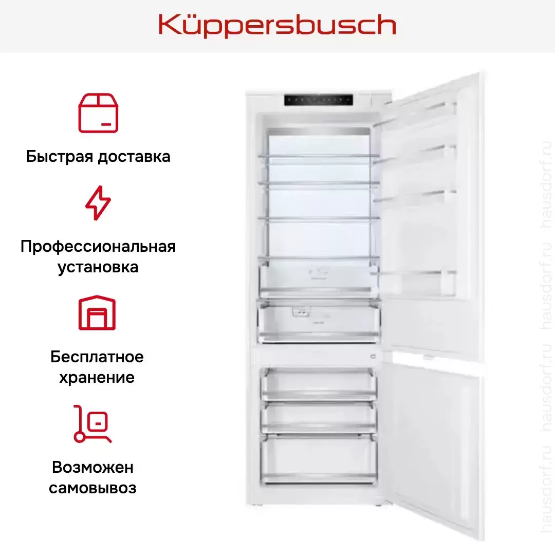 Встраиваемый холодильник Kuppersbusch FKGF 9855.0i — флагманская модель в линейке Küppersbusch (немецкого производства), холодильник премиального сегмента.