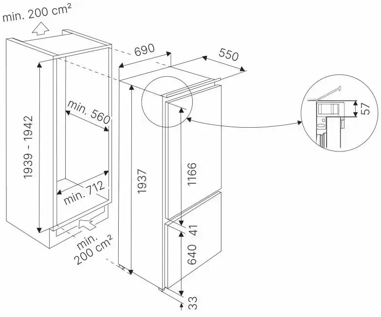 Тип: встраиваемый. Вид: холодильник с морозильником.
