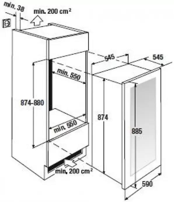| Габариты ниши для встраивания, ВхШхГ (см) | 87.8x56x55 |