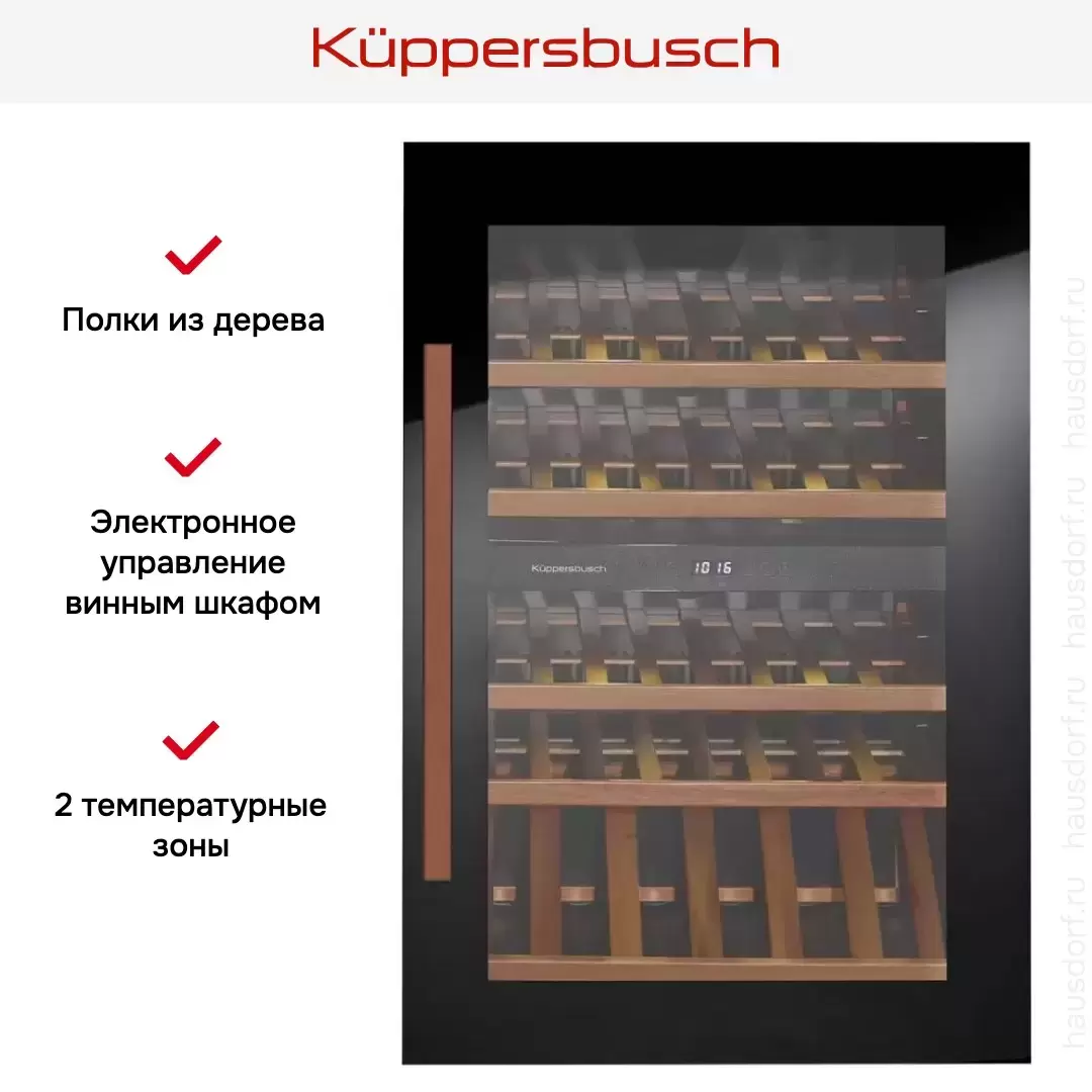 Встраиваемый холодильник для охлаждения вина Kuppersbusch FWK 2800.0 S7 — винный шкаф класса люкс, немецкого производства, сочетающий надёжность и передовые технологии Küppersbusch.