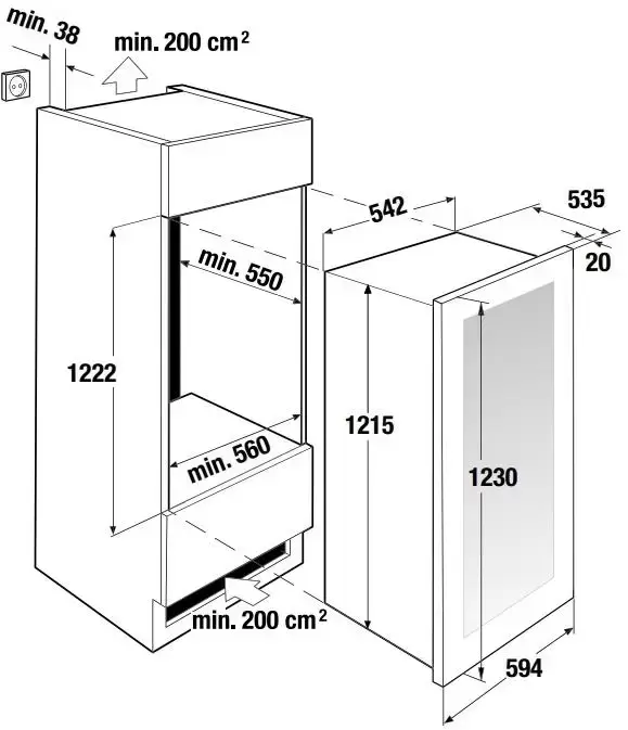 | Дополнительные параметры | Панель управления с нажимными кнопками Электронная индикация температуры Деревянная полка для демонстрации под углом 45°: 1 2 лампы по 0,2 Вт в каждой температурной зоне Ручка: черный |