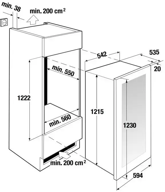 | Габариты ниши для встраивания, ВхШхГ (см) | 122.2x56x55 |