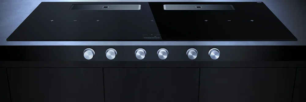 Индукционная варочная поверхность с вытяжкой Kuppersbusch KMI 12850.0 SR-E Silver Chrome — варочная панель премиального сегмента, немецкого производства, сочетающая надёжность и передовые технологии Küppersbusch.
