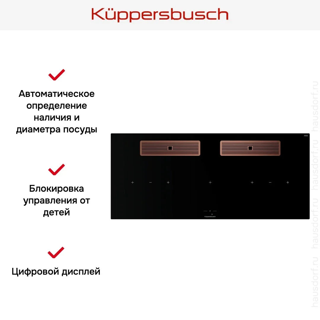 Индукционная варочная поверхность с вытяжкой Kuppersbusch KMI 12850.0 SR-S Copper — варочная панель премиального сегмента, немецкого производства, сочетающая надёжность и передовые технологии Küppersbusch.