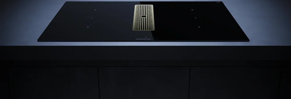 Индукционная варочная панель с вытяжкой Kuppersbusch KMI 8350.0 SR Gold — варочная панель класса люкс от немецкого производителя Küppersbusch.