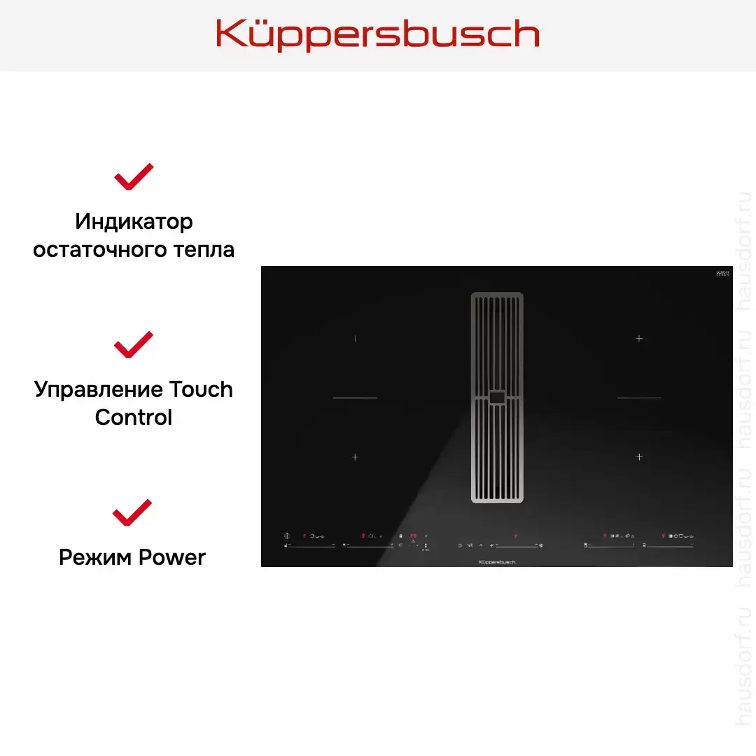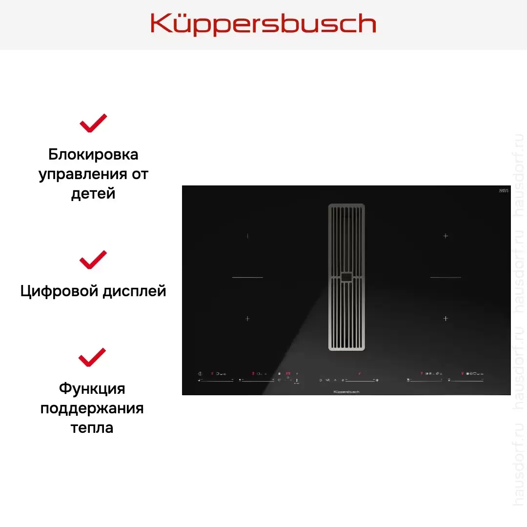 Варочная панель с вытяжкой Kuppersbusch KMI 8590.0 SR Silver Chrome — варочная панель класса люкс, немецкого производства, сочетающая надёжность и передовые технологии Küppersbusch.