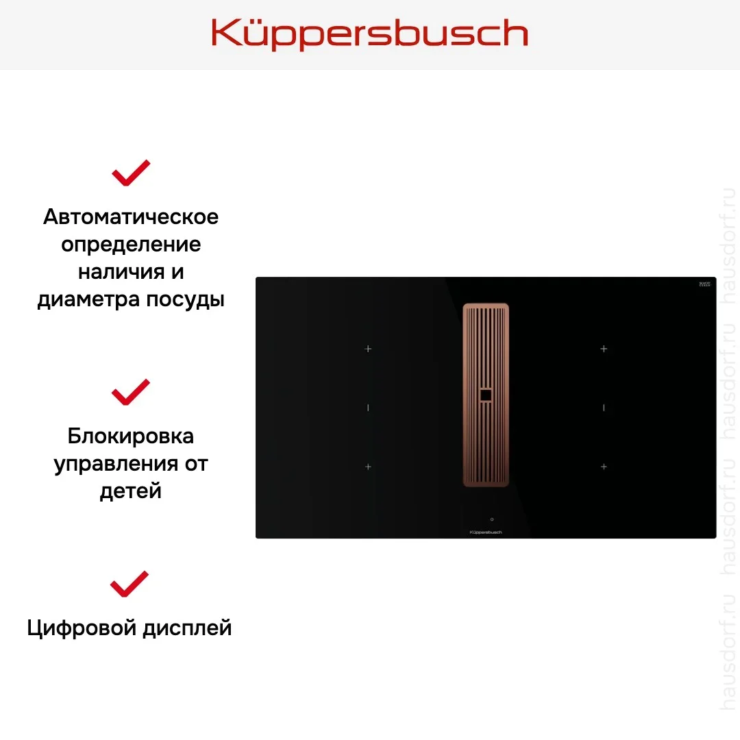Индукционная варочная панель с вытяжкой Kuppersbusch KMI 9350.0 SR Copper — варочная панель премиального сегмента от немецкого производителя Küppersbusch.