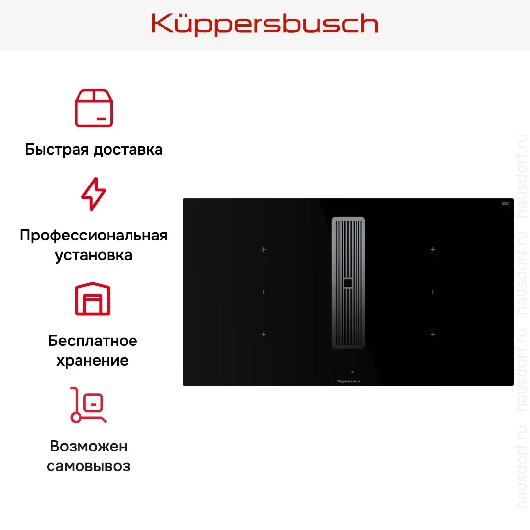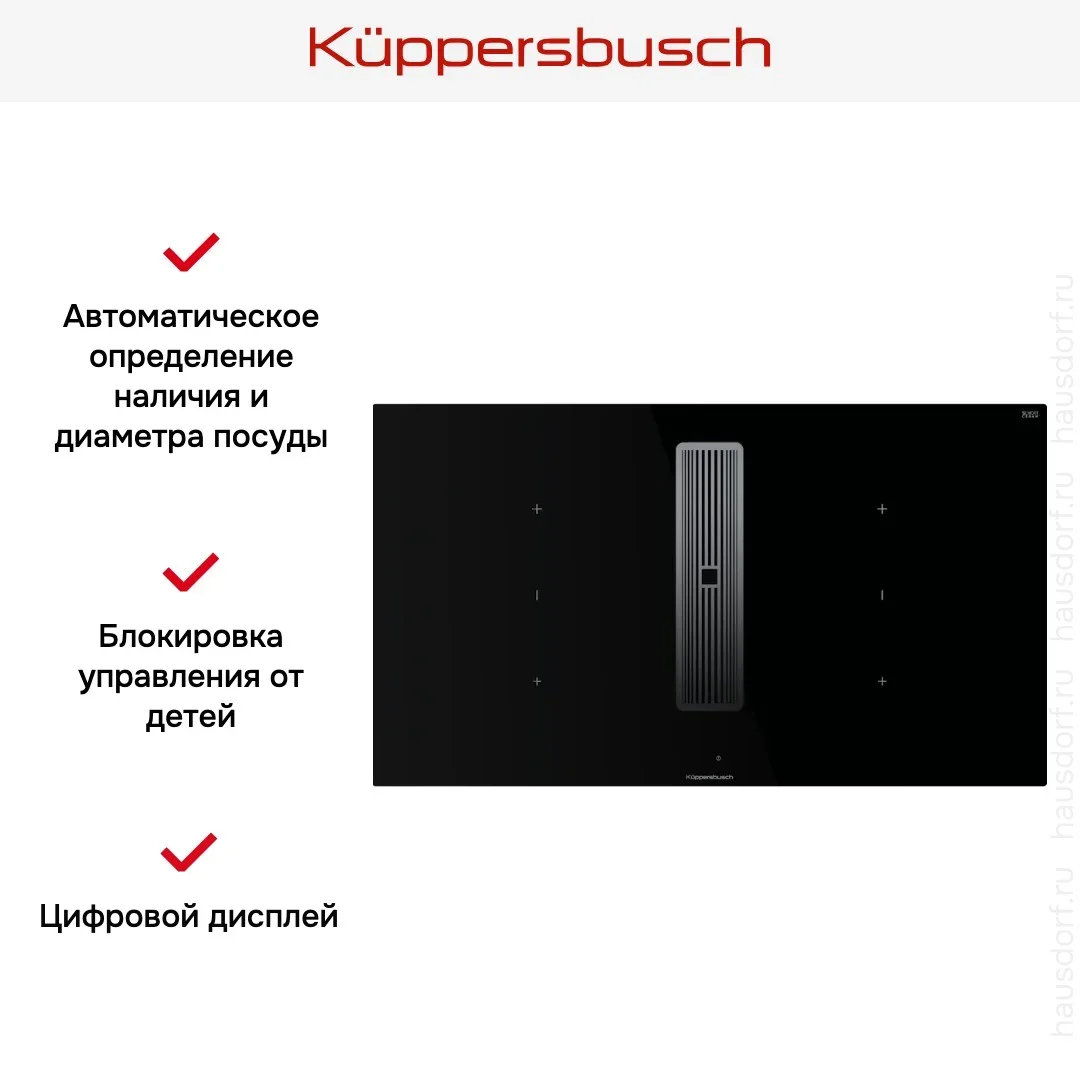 Индукционная варочная панель с вытяжкой Kuppersbusch KMI 9350.0 SR Silver Chrome — флагманская модель в линейке Küppersbusch (немецкого производства), варочная панель класса люкс.