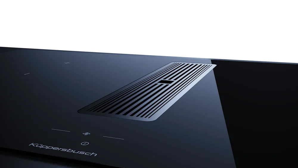 Индукционная варочная поверхность с вытяжкой Kuppersbusch KMI 9850.1 SR-S Black Velvet — варочная панель премиум-класса от немецкого производителя Küppersbusch.