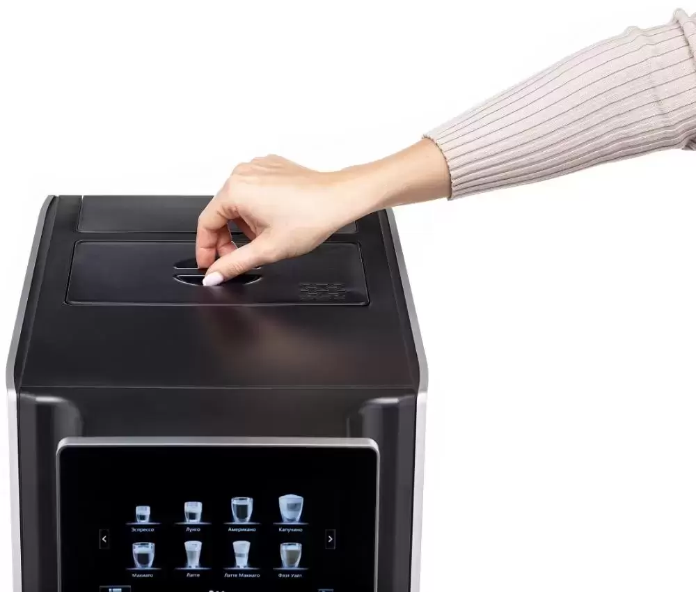 | Дополнительные параметры | Тип TFT-дисплея: HD с диагональю 7“ Регулируемый объем напитка: 20-250 мл 5 ступеней температуры кофе: 75-90°С 4 уровня помола кофе Емкость для воды заполняется сзади |