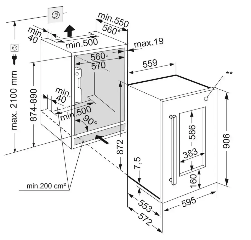 | Габариты ниши для встраивания, ВхШхГ (см) | 87.4-89x56-57x55 |