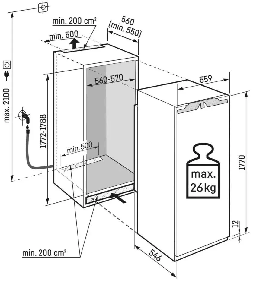 | Габариты ниши для встраивания (ВхШхГ) (см) | 177.2-178.8х56-57х55 |
