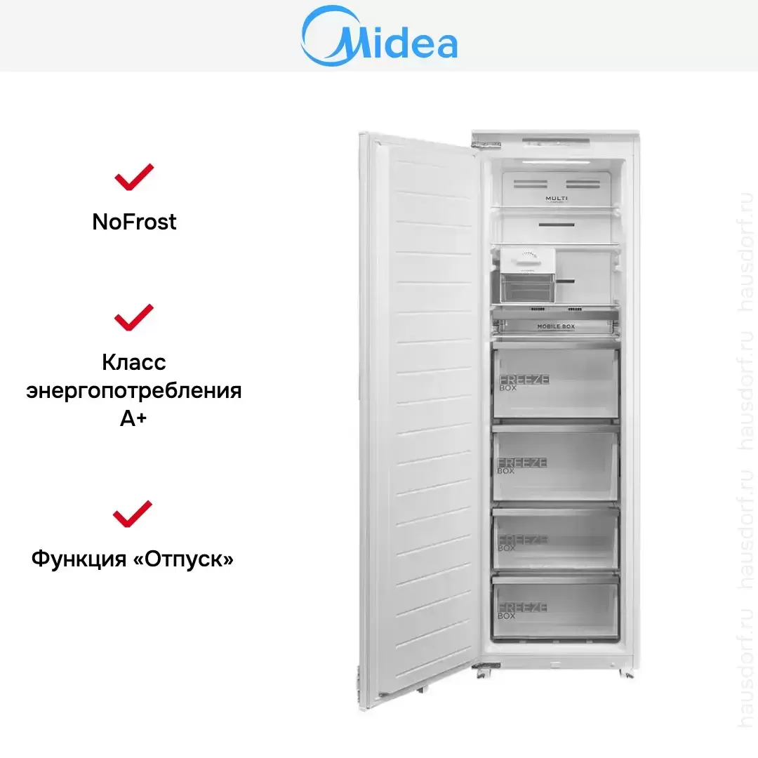 Встраиваемая морозильная камера Midea MDRE306FZF01 — холодильник высшего класса, сочетающий надёжность и передовые технологии Midea.