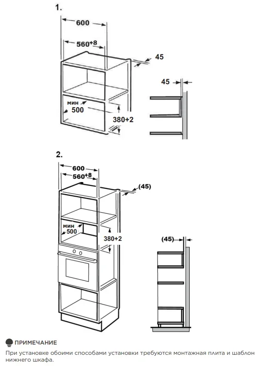 | Размеры ниши для встраивания (ВxШxГ) (cм) | 38-38.2х56-56.8х50 |