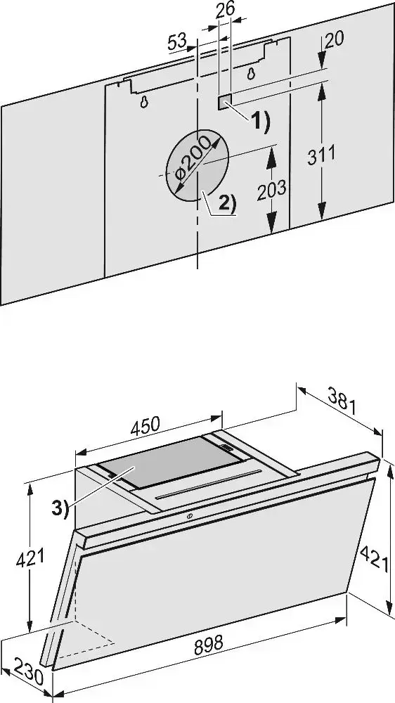 | Особенности модели | Автоматическая функция Con@ctivity Вентилятор двойного действия Удобное для чистки покрытие вытяжки CleanCover |