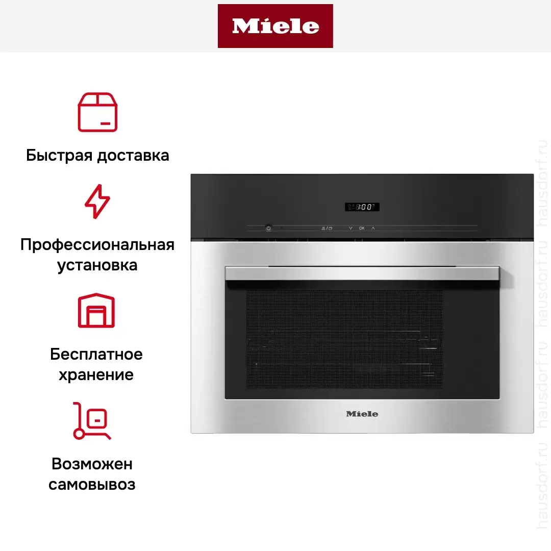 | Дополнительная информация | Время приготовления не зависит от объёма Расположение петель двери: слева Количество уровней одновременного приготовления: 3 Глубина ниши в мм: 550 Дверца CleanGlass Удаление контейнера для свежей воды одним нажатием ТЭН в днище для уменьшения образования конденсата DualSteam Программируемое время приготовления пищи Автоматические программы с индивидуальной настройкой процесса приготовления Автоматические программы Индивидуальные установки |