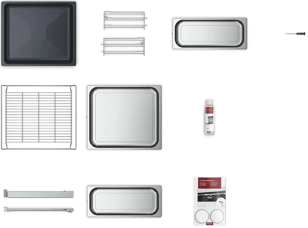 | Комплектация | Термощуп Решетка для выпечки и запекания с покрытием PerfectClean Универсальный противень с покрытием PerfectClean Два лотка из нержавеющей стали перфорированные Один лоток из нержавеющей стали неперфорированный |