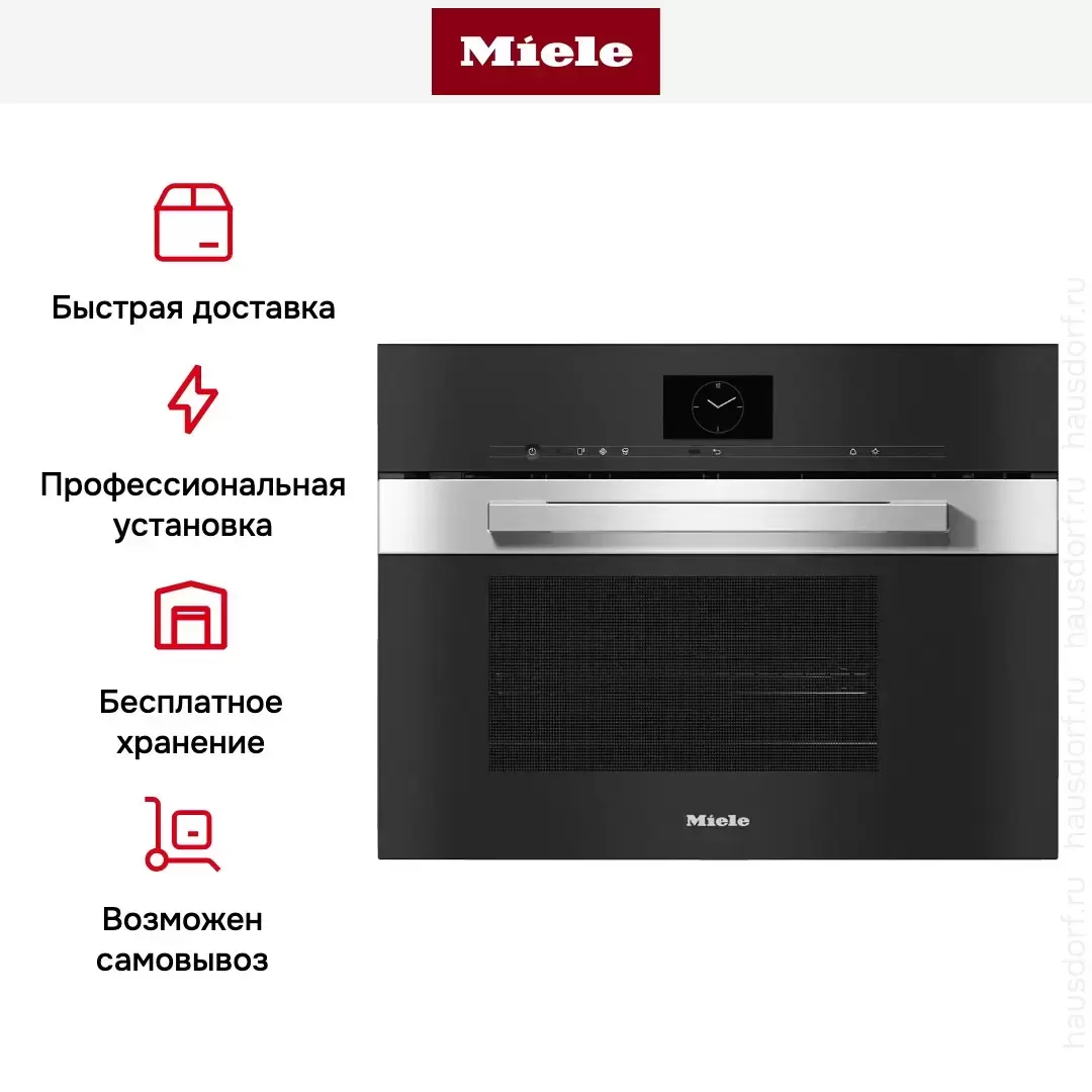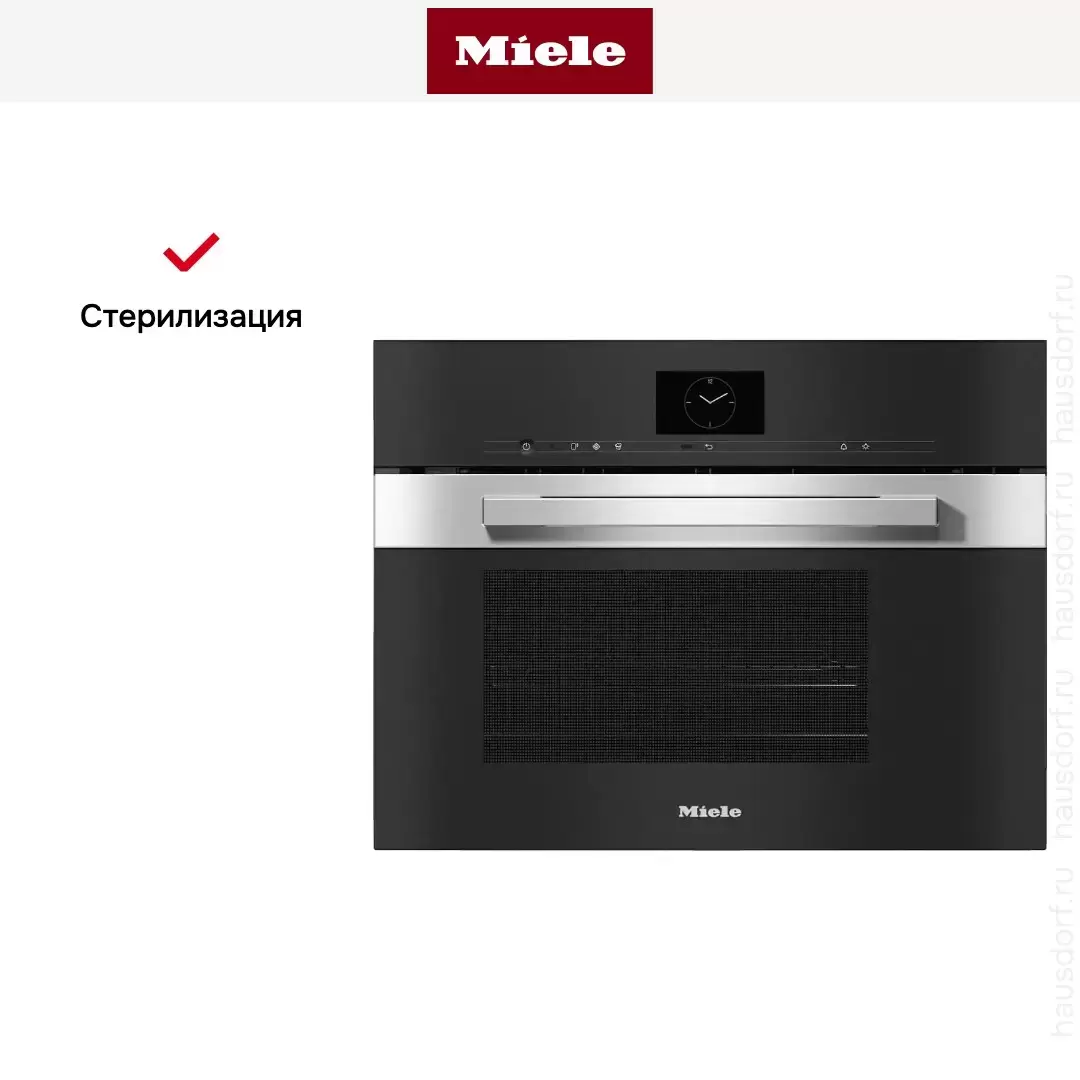 | Дополнительная информация | Технология MotionReact: при обнаружении движения включается дисплей, звуковой сигнал или подсветка Помощник Акустический сигнал при достижении температуры Рекомендация температуры на дисплее Быстрый старт Программа замачивания Уровни мощности СВЧ: 80 / 150 / 300 / 450 / 600 / 850 / 1000 Вт Время приготовления не зависит от объема блюда ТЭН внизу для уменьшения конденсата Технология DualSteam Технология Quick&Gentle |