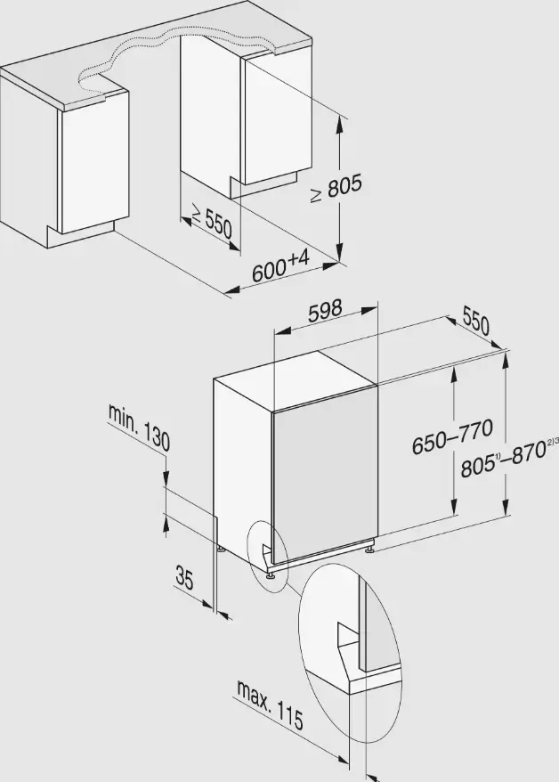 | Размеры ниши для встраивания (ВхШхГ) (см) | 80.5-87х60х55 |