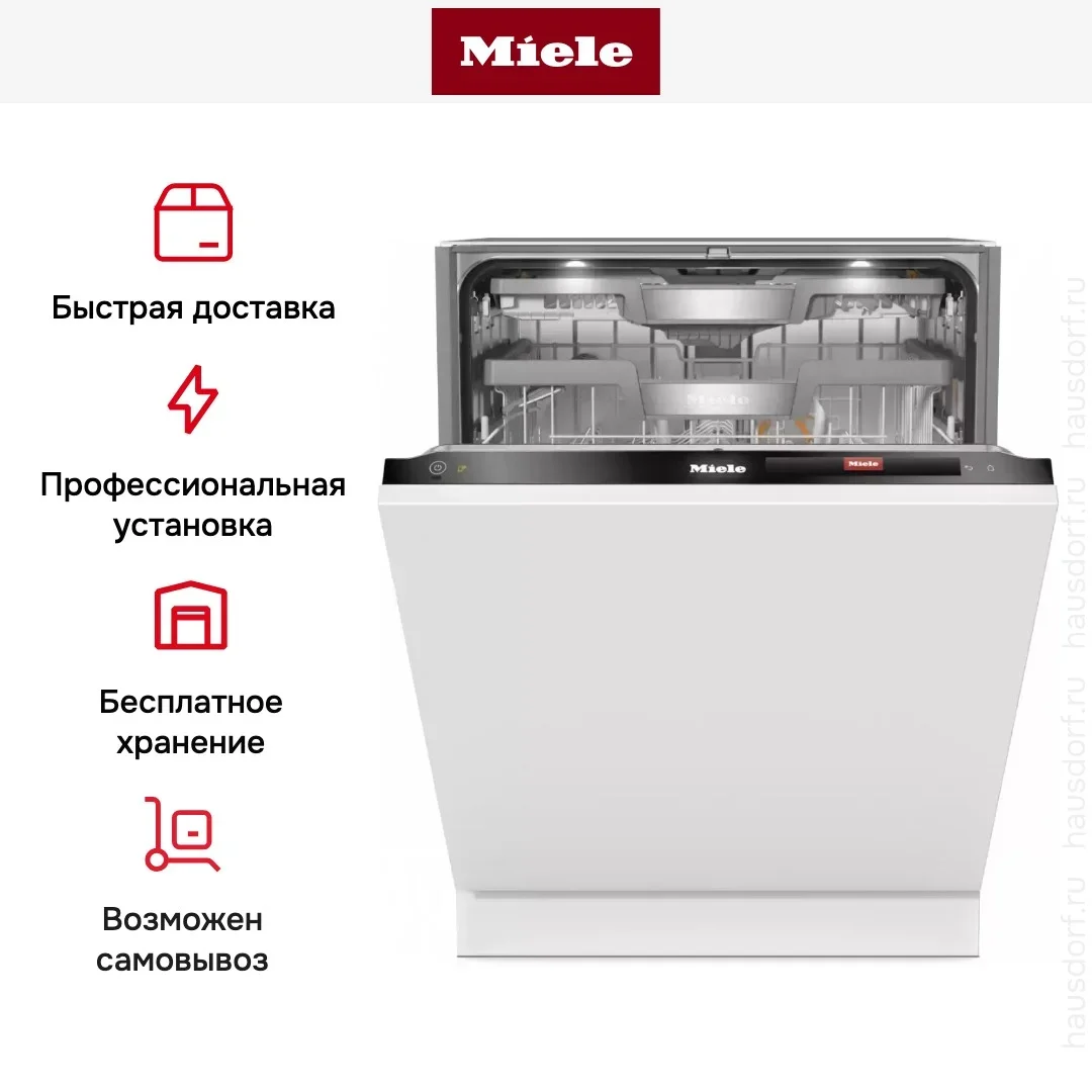 От G 7765 SCVi XXL AutoDos — наличием K2O (автоматическое дозирование ополаскивателя). От G 7191 Gala Edition — серийной моделью без юбилейного дизайна, но с K2O. От G 7790 SCVi AutoDos K2O — XXL-камерой. Абсолютный топ-флагман посудомоек Miele — максимальная автоматизация и экономия времени.