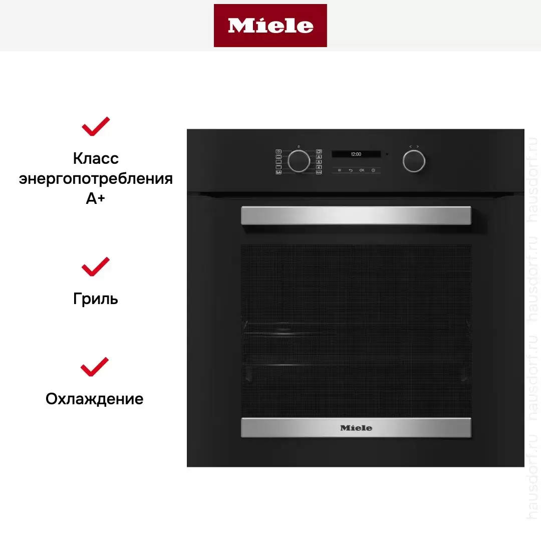 От H 2465 BP ACTIVE — каталитикой вместо пиролиза (экономия 10-15 %). От H 2861 B OBSW — упрощённой электроникой с меньшим числом режимов. От H 7260 B OBSW (Generation 7000) — EasyControl вместо сенсорного DirectSensor и отсутствием FlexiClip-направляющих. Самый бюджетный вход в Miele — вариант для покупателей с ограниченным бюджетом, которые хотят надёжность бренда.