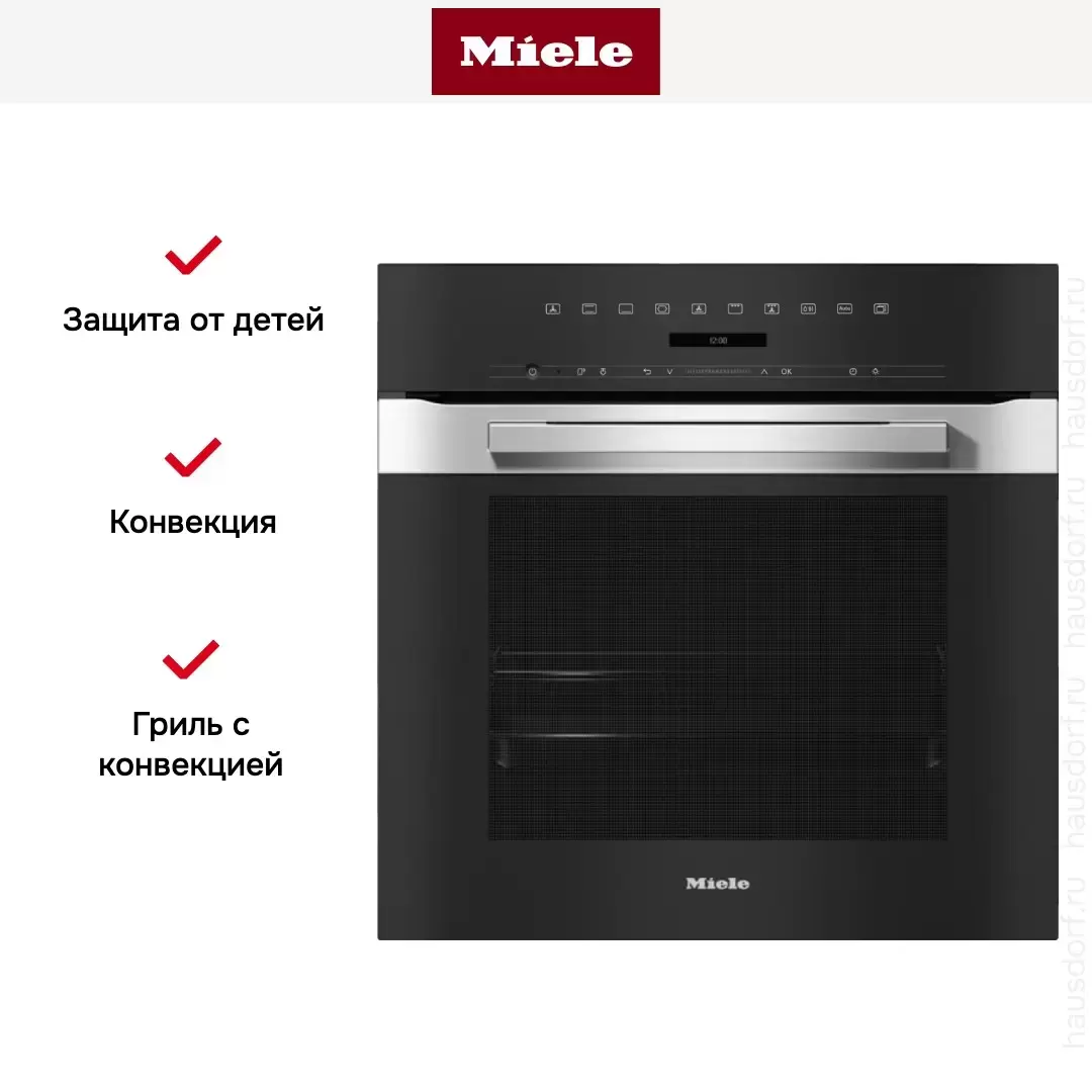 | Другие режимы | «Конвекция плюс», «Конвекция с паром», «Автоматика жарения» Банк рекомендуемых температур для каждого режима Программирование продолжительности приготовления с автоматическим отключением WiFiConn@ct, подключение к мобильному приложению Miele@Mobile+RemoteService, WiFiConn@ct Интенсивное выпекание |