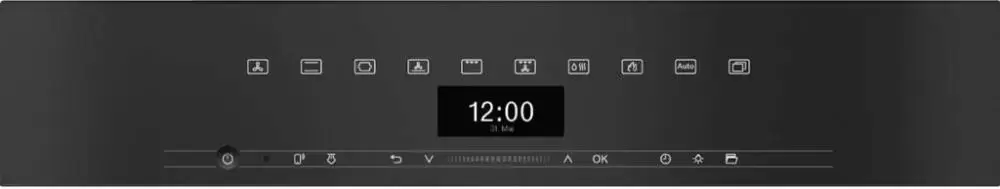 Сенсорный TFT-дисплей M Touch. Wi-Fi Miele@home — приложение с рецептами и push-уведомлениями. Проводной термощуп. LED BrilliantLight. Корпус BPX без ручек с push-to-open — дверца открывается нажатием. Двухцветный фасад (обсидиан верхняя часть + графит нижняя) с серебряной надписью «125» выделяется среди монохромных духовых шкафов.