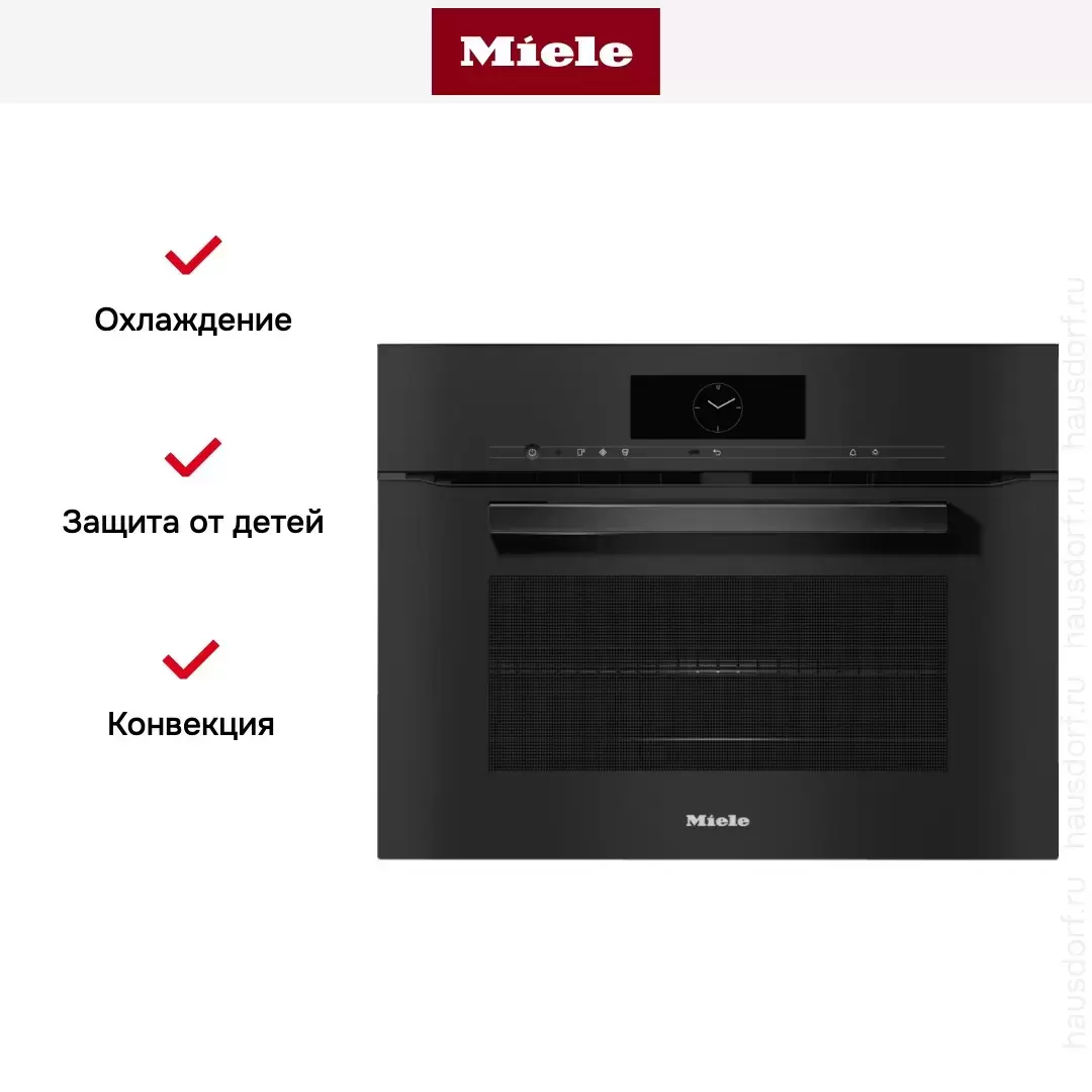 | Другие режимы | Конвекция плюс Интенсивное выпекание СВЧ; СВЧ + Автоматика жарения; СВЧ + Гриль; СВЧ + Конвекция плюс; СВЧ + Гриль с обдувом MyMiele Помощник Рекомендация температуры Быстрый старт |