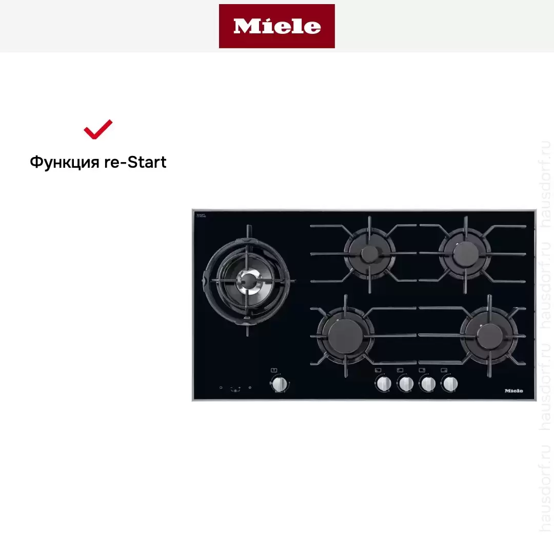 Miele KM 3054-1 — газовая варочная панель увеличенного формата 90 см с пятью конфорками на стеклокерамическом основании. От KM 3010 (60 см, 4 конфорки) отличается XXL-форматом и дополнительной пятой конфоркой в центре — для WOK или крупной посуды. Стандартный выбор для больших кухонь с газопроводом и премиальных островных планировок.