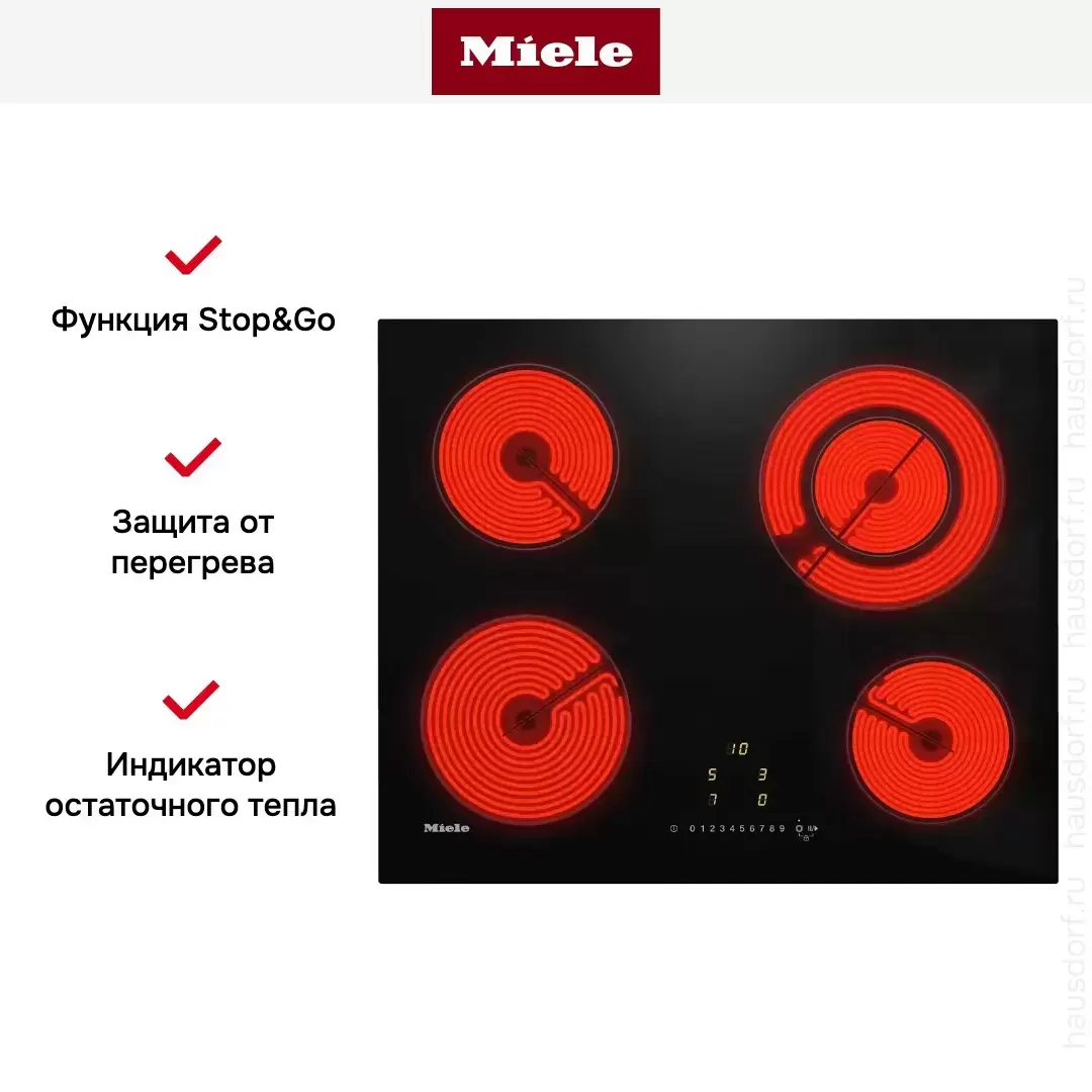 Сенсорная панель с регуляторами мощности 0-9 для каждой зоны. Без интеграции с приложением Miele@home.