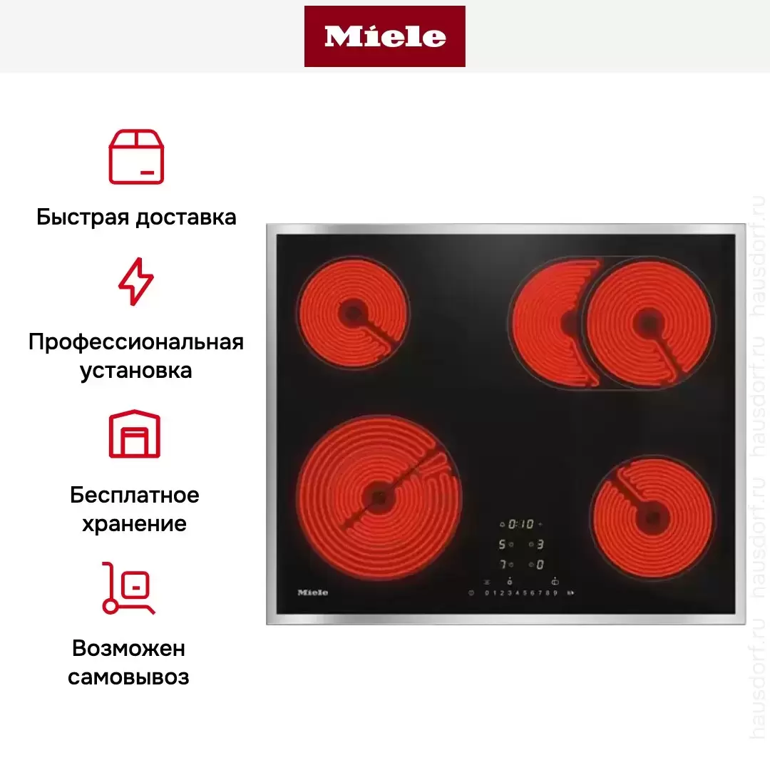 Сенсорная панель с регуляторами мощности для каждой зоны. Без Miele@home и Con@ctivity.