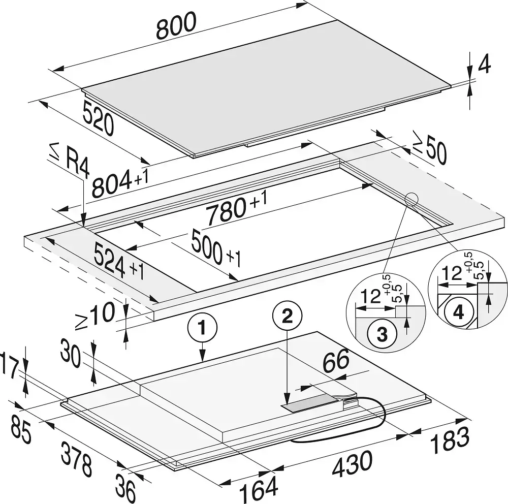 Габариты 806×527 мм, вырез 750×490 мм. Мощность 7,7 кВт — линия 380 В или 220 В 32 А. Сборка Miele (Германия). Brera — авторизованный дилер Miele: гарантия 2 года, доставка и подключение сертифицированным мастером Miele в Москве включены в стоимость.