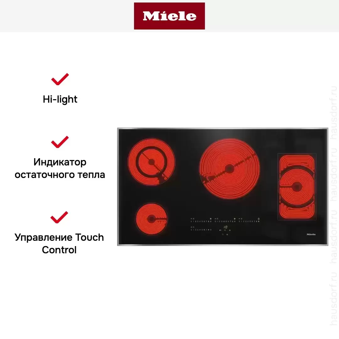 | Дополнительные параметры | Управление SmartSelect с желтой подсветкой, выбором мощности на цифровой шкале для каждой конфорки, c опцией WipeProtection ExtraSpeed |