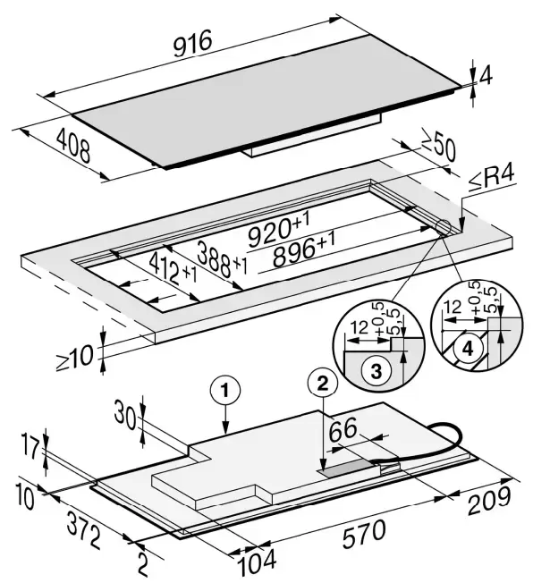 | Дополнительные параметры | Зона PowerFlex: 230x390 мм; 3.4 / 4.8 / 7.3 кВт Цвет дисплея: желтый Защита от загрязнений Внешние размеры выреза для встраивания заподлицо (ШхГ): 92х41.2 см |