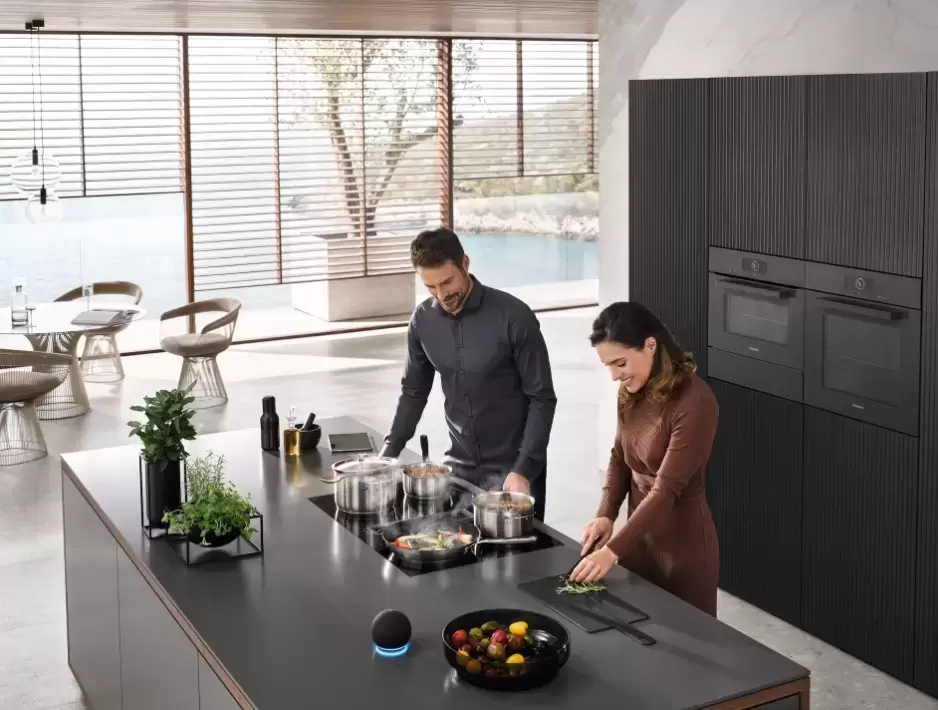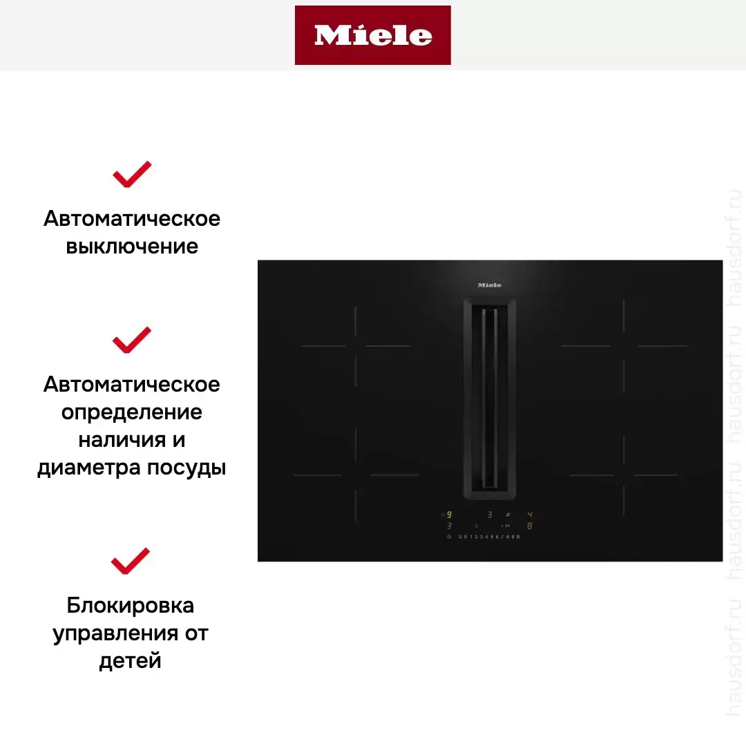 Сенсорная панель DirectSelect Plus со слайдерами мощности для каждой зоны. Stop&Go, Keep Warm, таймер, Recall, блокировка от детей. Wi-Fi Miele@home. Управление слева (грань FL).