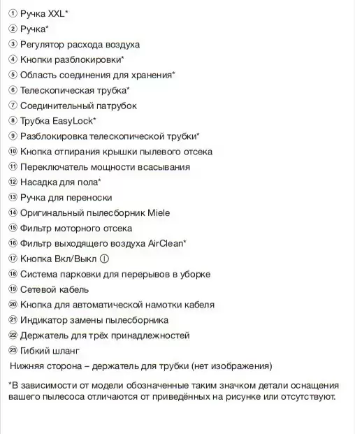 | Особенности модели | Ручка XXL Система парковки для перерывов в уборке |