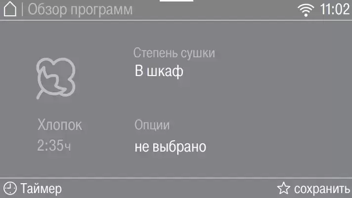 | Индикация | Хода программы / этапа сушки / времени выполнения цикла Времени до окончания программы |