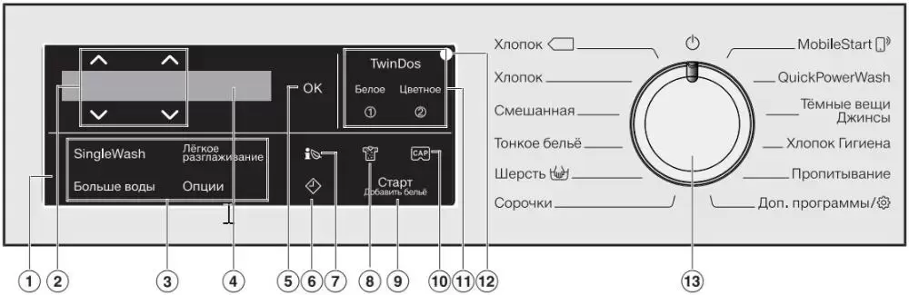 | Загрузочный люк | Разблокировка / электромагнитный замок — возможность дозагрузки белья |