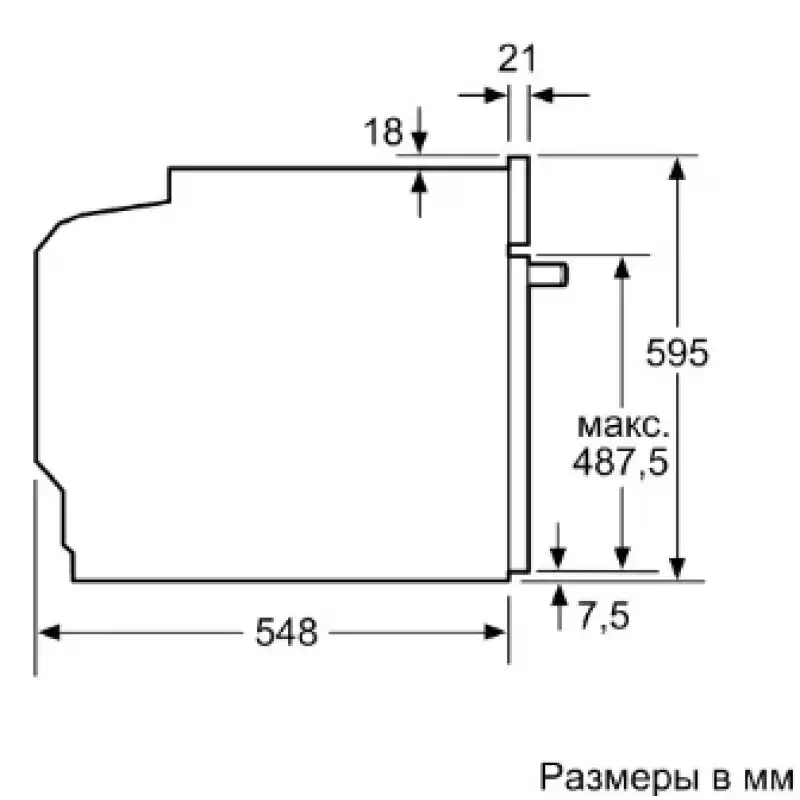 | Дополнительные параметры | Глубина при открытой двери: 635 мм Размер большого противня: 1290 см² Кнопка Старт Возможна установка телескопических направляющих |