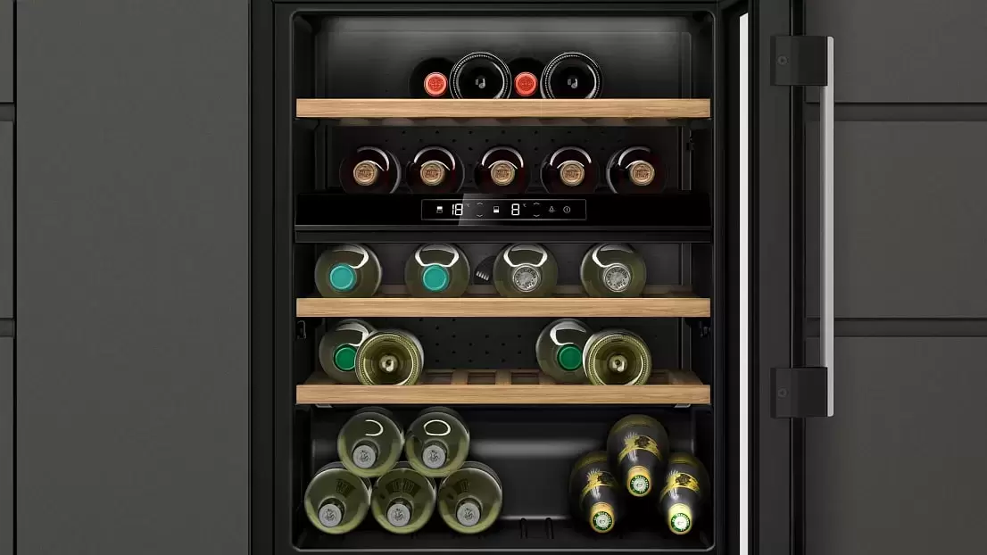 Встраиваемый винный шкаф Neff KU9213HG0 — флагманская модель в линейке Neff (немецкого производства), винный шкаф премиального сегмента.