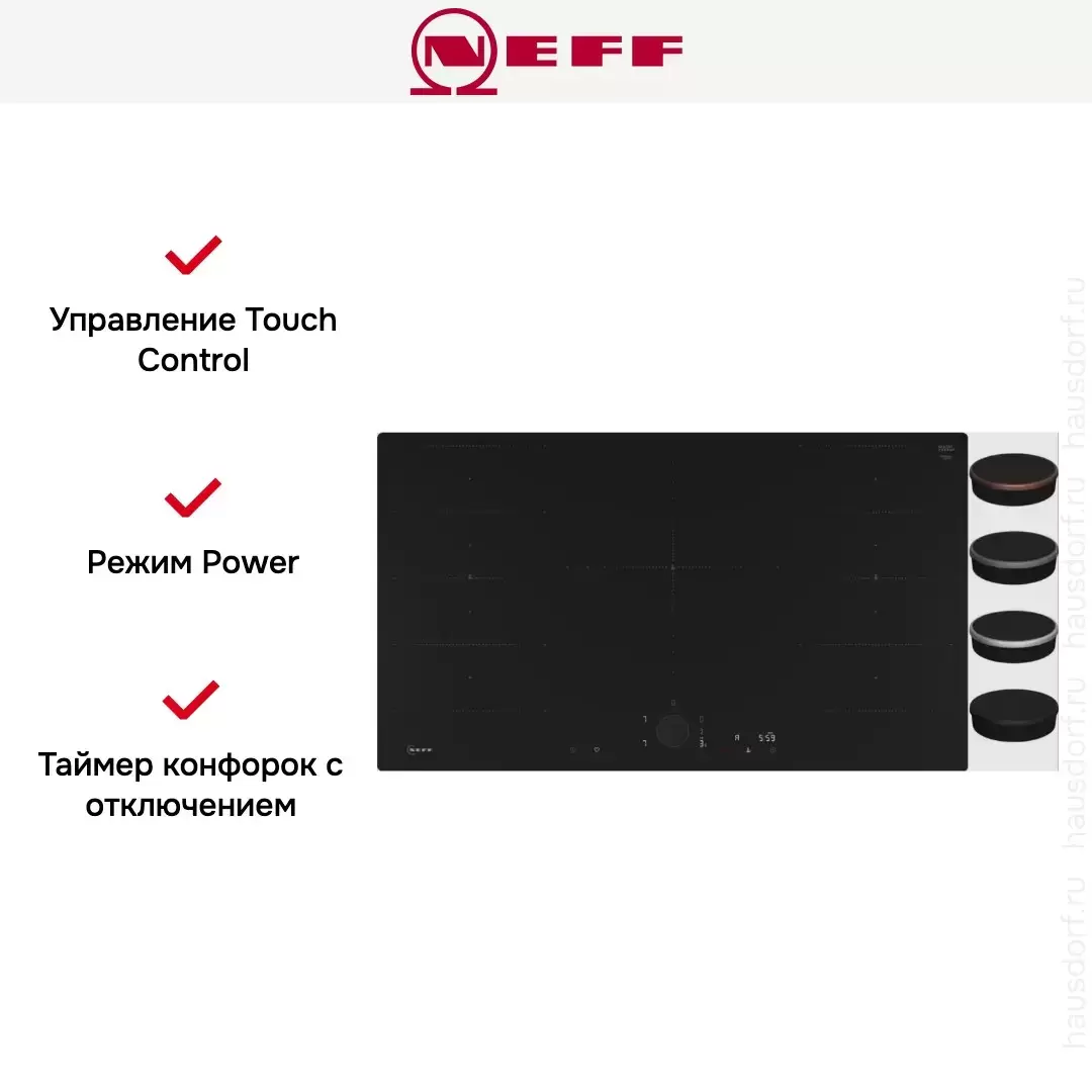 | Серийная комплектация | Кабель: без вилки Показанный Тwist Раd Flех® к варочным панелям NEFF не входит в комплект поставки и заказывается отдельно |