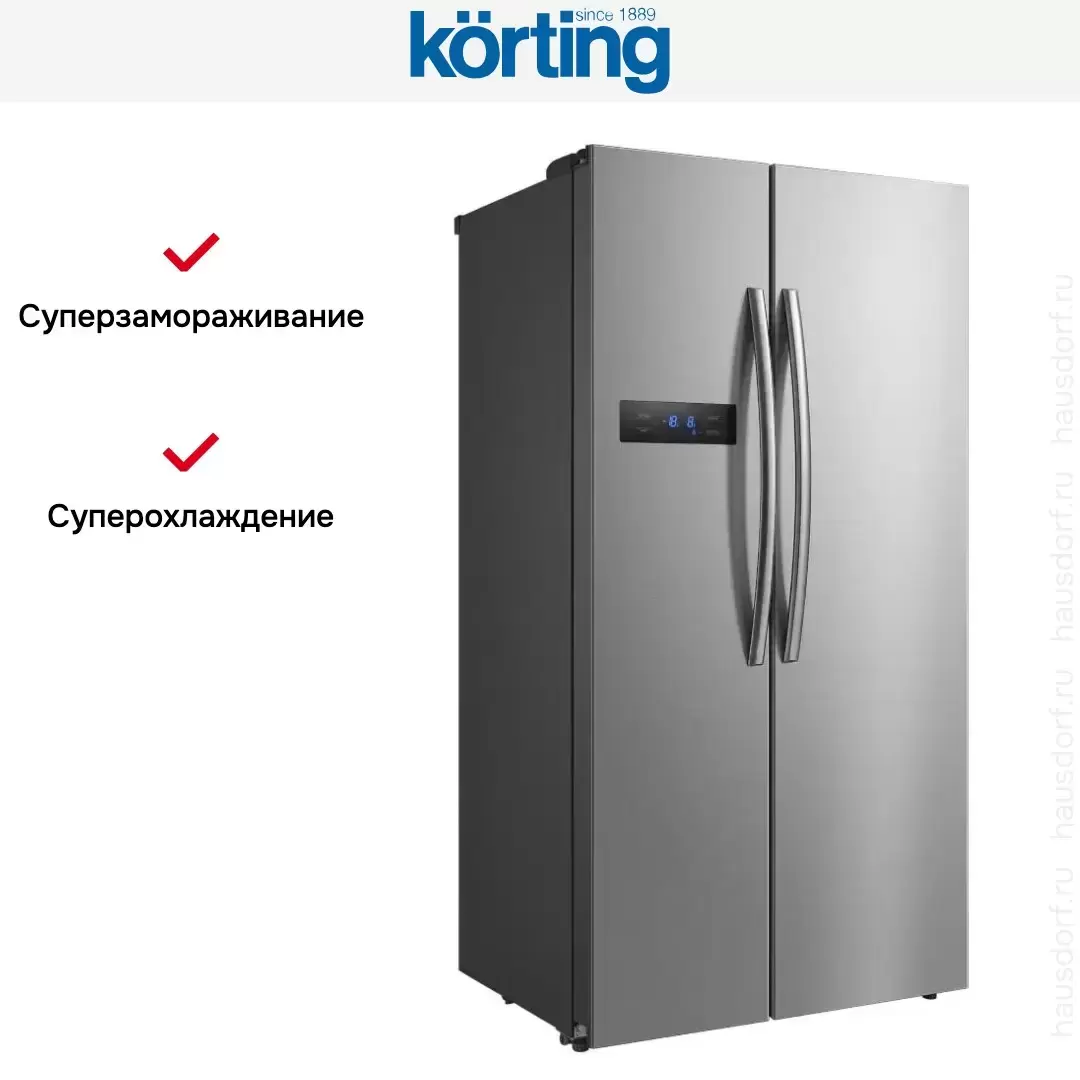Холодильник Side-By-Side Korting KNFS 91797 X — холодильник премиум-класса, итальянского производства, сочетающий надёжность и передовые технологии Korting.
