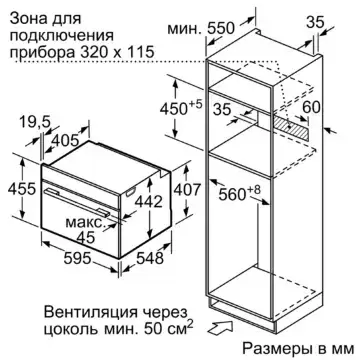 | Размеры ниши для встраивания, ВхШхГ (см) | 45-45.5х56-56.8х55 |
